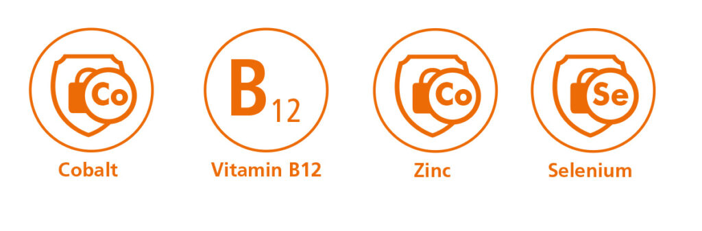 A highly concentrated Power Pack containing Cobalt and B vitamins with Zinc and Selenium to support Cobalt Absorption